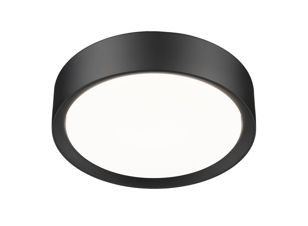 A frosted diffuser sits within a round steel frame to bring structured sophistication to a modern one-light flush mount ceiling light. Delivering bright illumination with integrated LEDs, its an energy efficient choice with an understated profile and a rich matte black finish that delivers standout sophistication and elegance.
