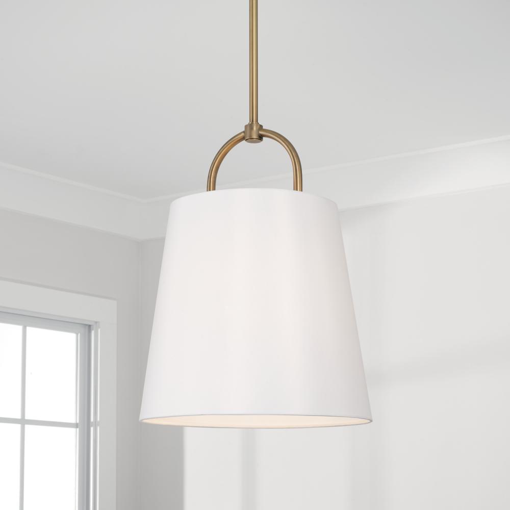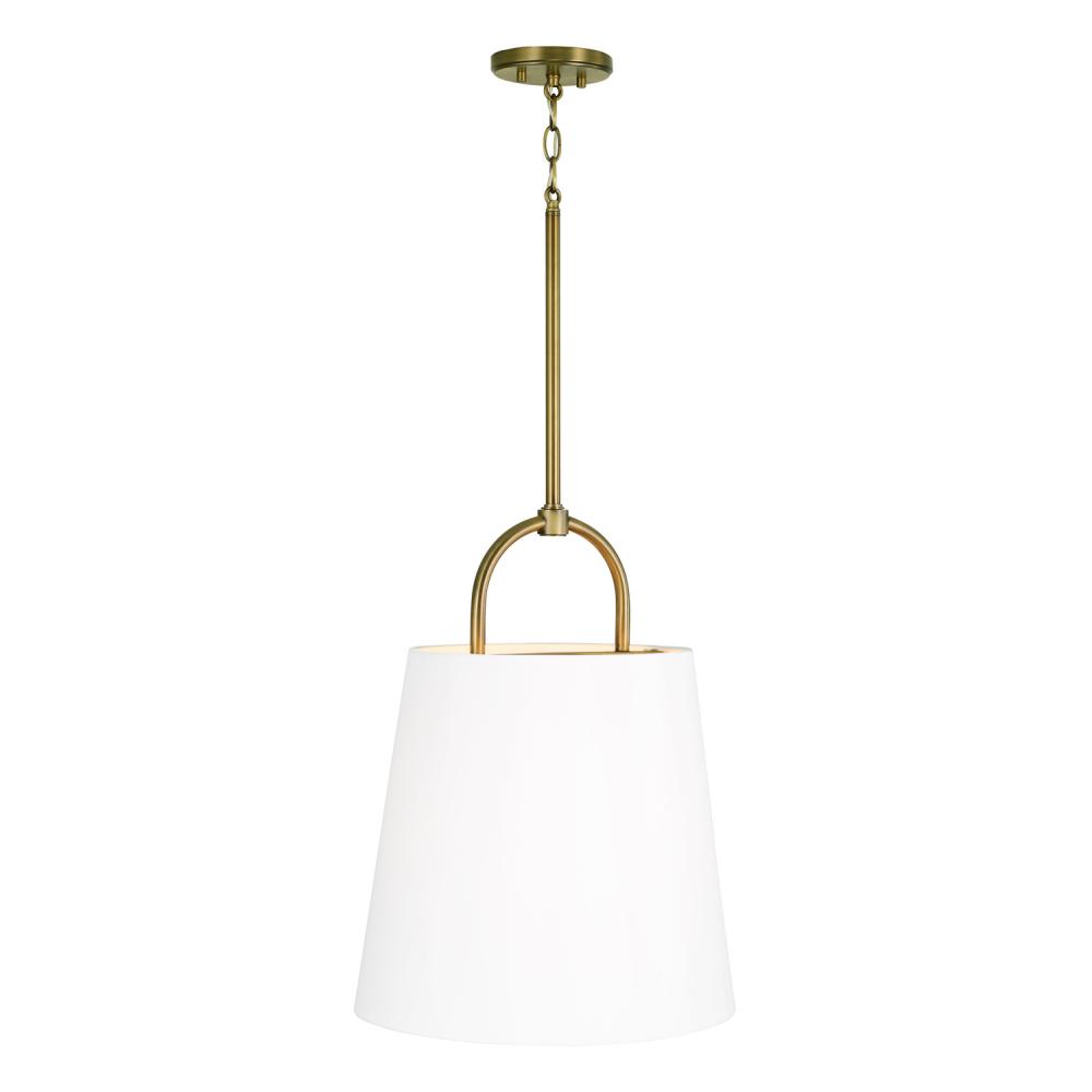 16"W x 21"H 1-Light Pendant in Aged Brass with White Fabric Shade