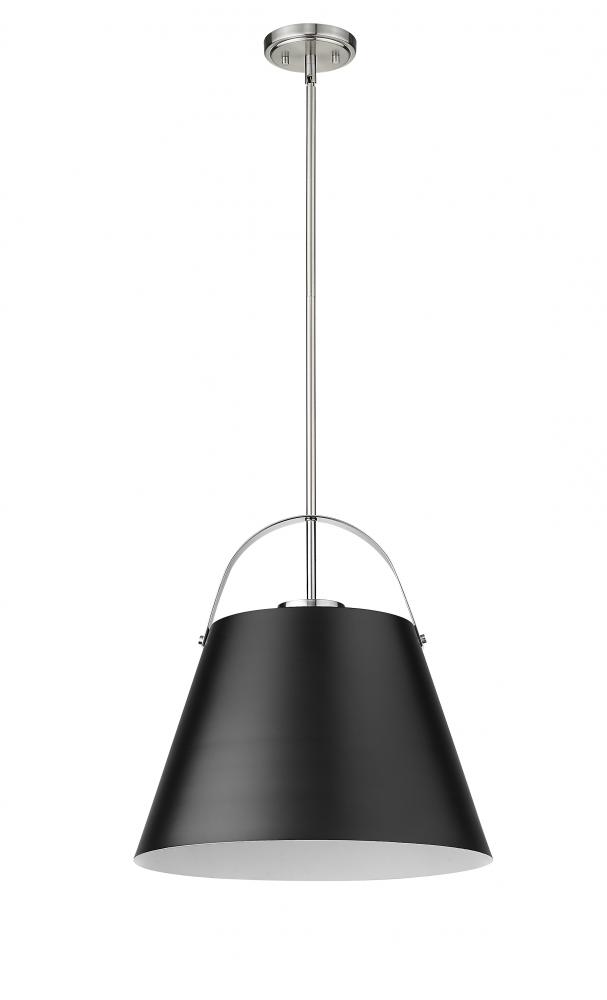 Classic industrial style adds a casual influence to this transitional single-light pendant, a superb choice for a kitchen or entertaining space. With a tapered matte black finish metal shade and brushed nickel finish steel frame, it offers up a relaxing aesthetic with plenty of personality.