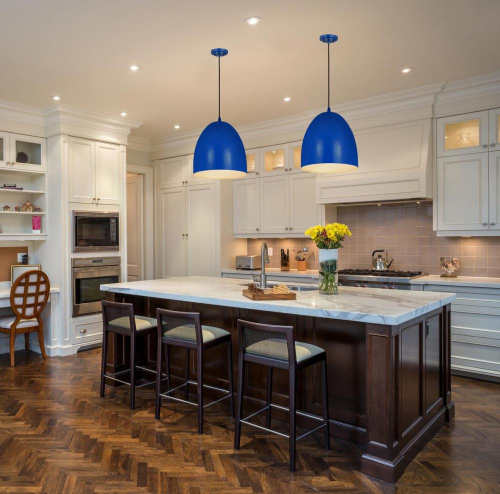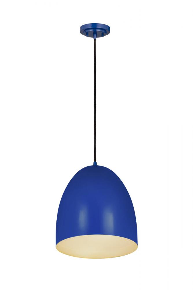 Indulge a love of farmhouse flavor with an updated, modern touch. The Z Studio Dome pendant creates a cheery look with a whimsical rounded dome silhouette and construction of bright blue finish iron. This one-light pendant features a matching blue canopy and a braided black cord to change up its aesthetic and add a casual look. Whether shooting for a storied vintage feel or an updated Mid-Century Modern motif, this standout pendant delivers a pop of color to kitchens, dining areas, and entryways.