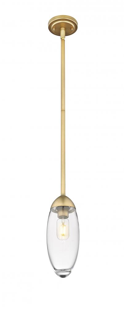 Striking glam attitude plays it low and easy in a light fixture with promise. This pendant from the Arden collection delivers sophistication with warm rubbed brass finish iron and an organic, tear-shaped clear glass shade that pulls together sleek style elements. Choose this pendant to highlight a contemporary foyer, nook, or dining area.