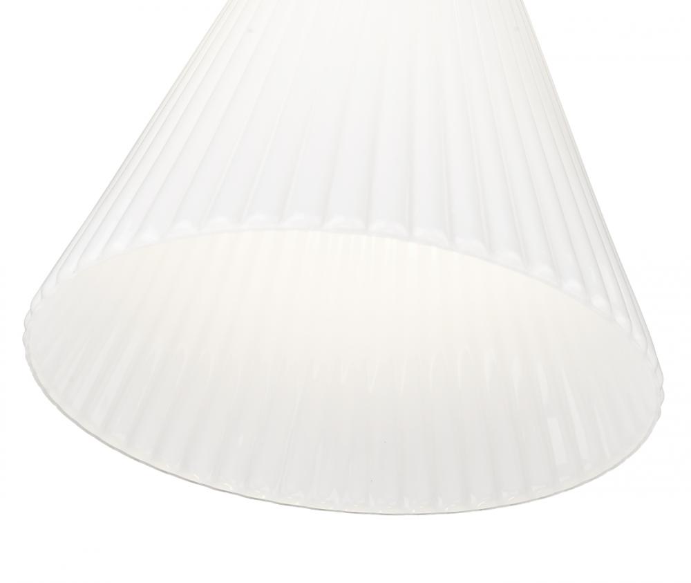 Soft fluting adds delicacy and movement to the conical shade of a modern one-light pendant. Beautiful glass pairs with a modern gold accent finish, creating a superb ambiance for a kitchen, living area, or bedroom.