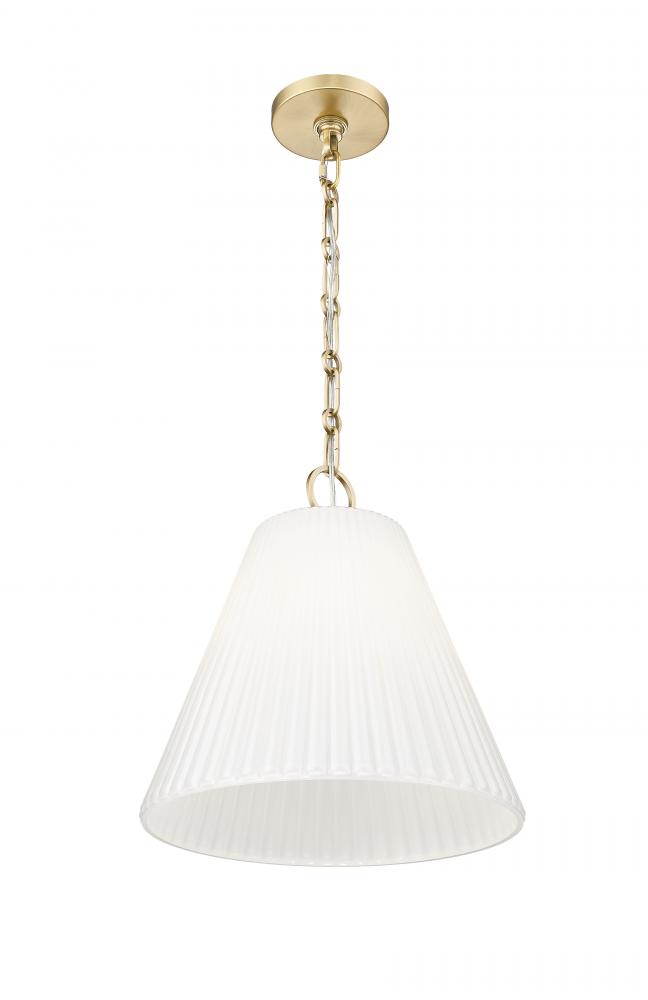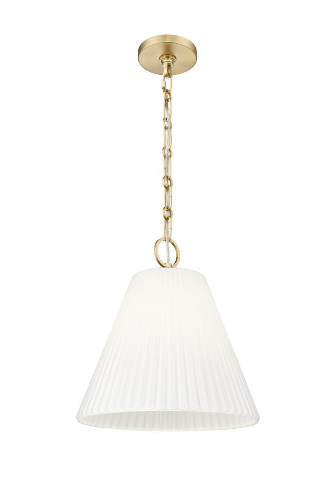 The finely fluted texture of the frosted glass shade on the Alaric pendant offers subtle sophistication that complements the design elements of the pendants. Alaric can be ordered in a choice of Polished Nickel, Matte Black, and Modern Gold finishes to com
