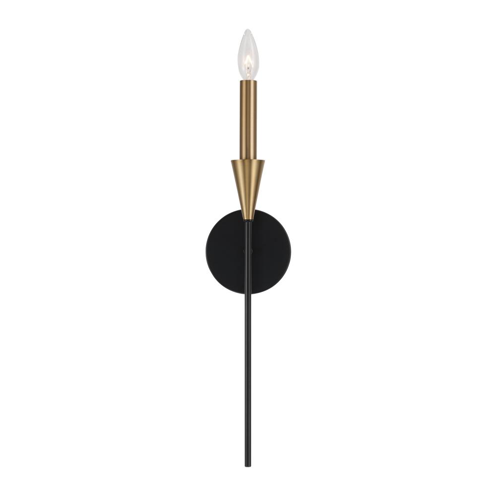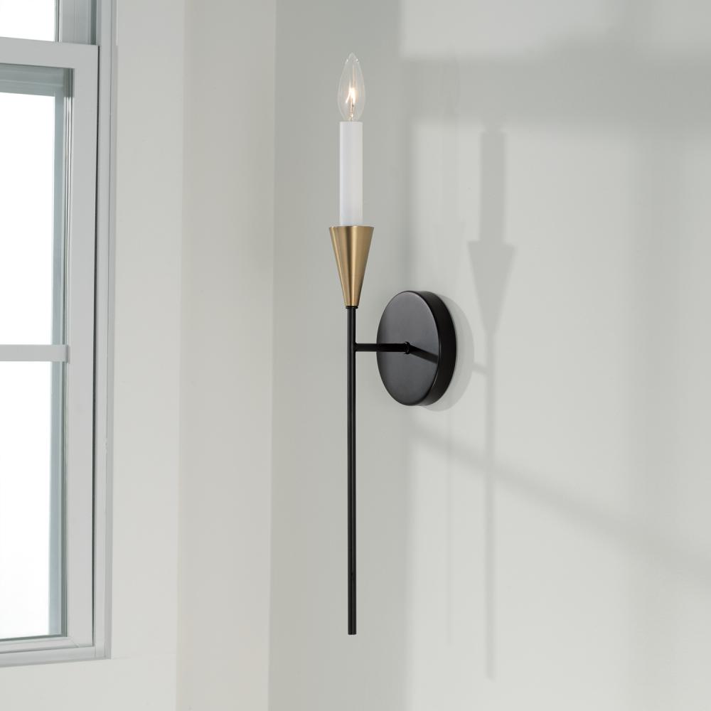 1-Light Sconce in Black and Aged Brass with Interchangeable White or Aged Brass Candle Sleeve
