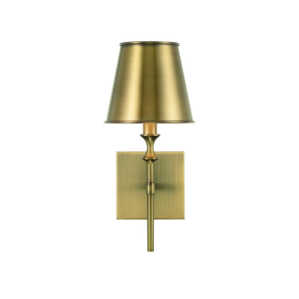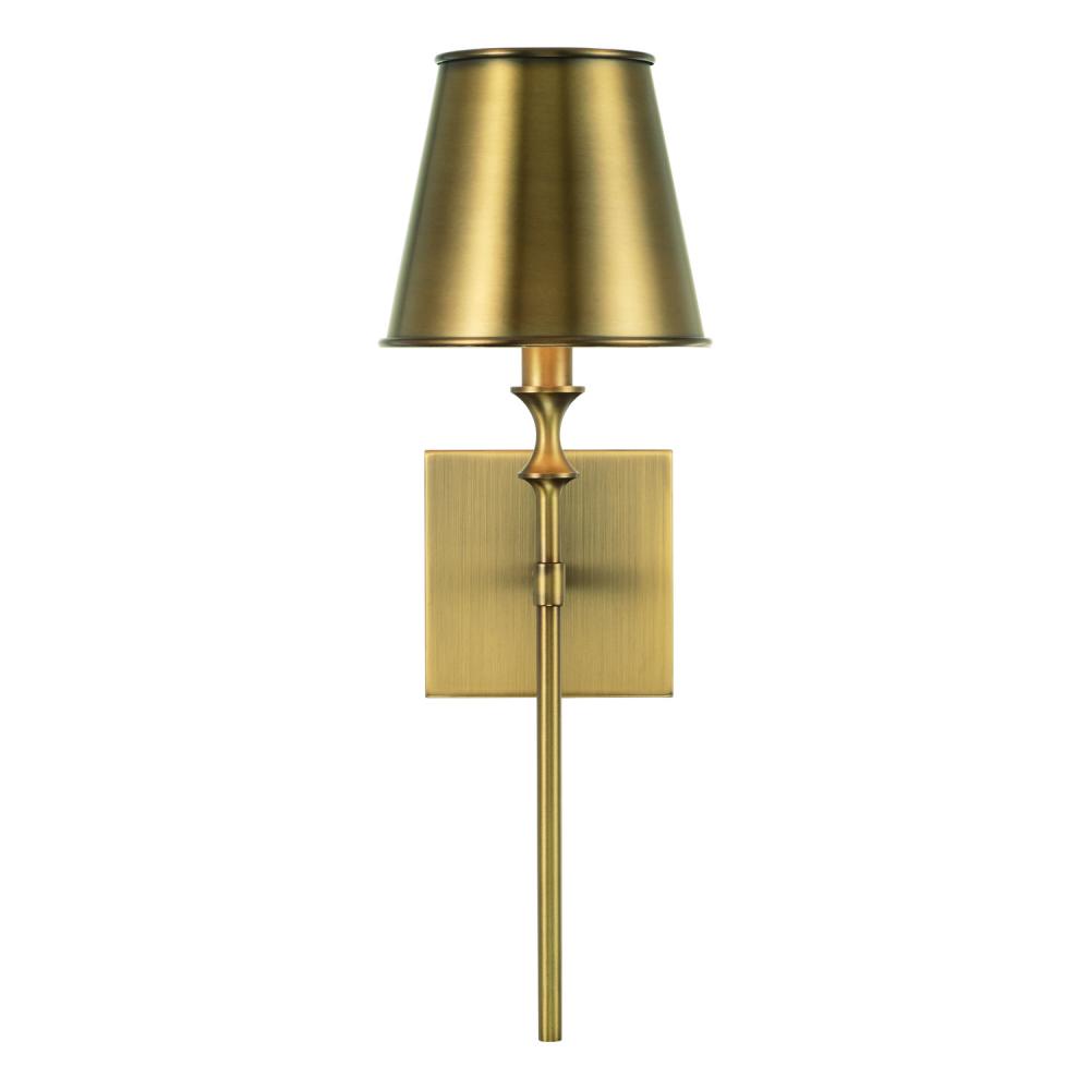 6.5"W x 18.75"H 1-Light Sconce in Aged Brass with Metal Shade with White Interior