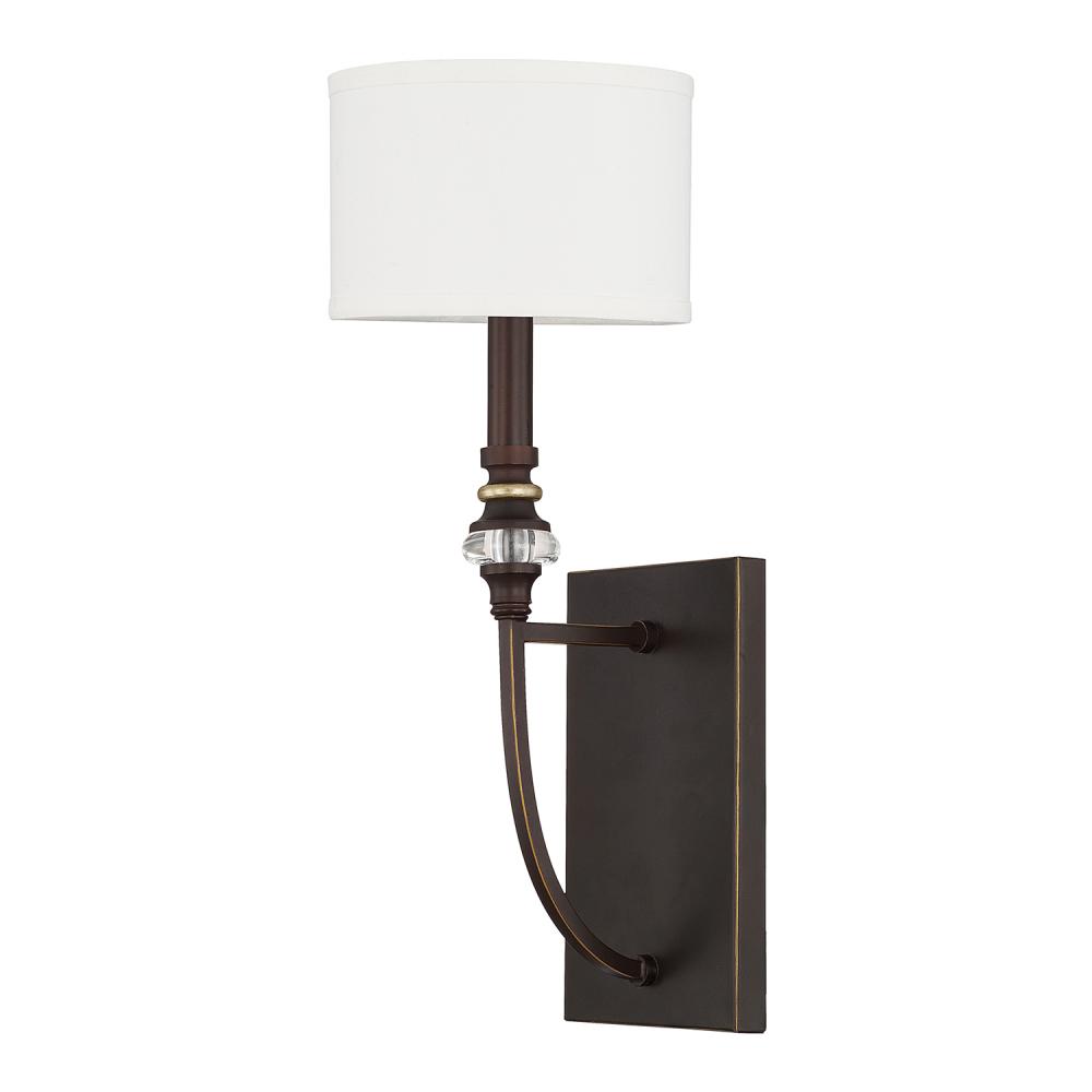 Brighten a hallway, staircase or foyer with the handsome styling of our Asher 1-light sconce. A single crystal embellishment adds a touch of brilliance to the single-light design, accented by a white fabric shade. Designed for transitional interiors, it's finished in our Champagne Bronze finish, a rich, deep brown with soft gold highlights.