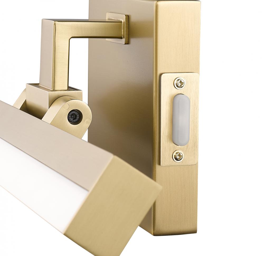 Intriguing accents update the crisp linear design of this elegant one-light vanity light. Sculptural elements maintain symmetry and clean lines in a fixture with a modern gold finish aluminum frame with a frosted plastic diffuser, emitting dimmable lighting with options for perfecting the level of ideal white color.