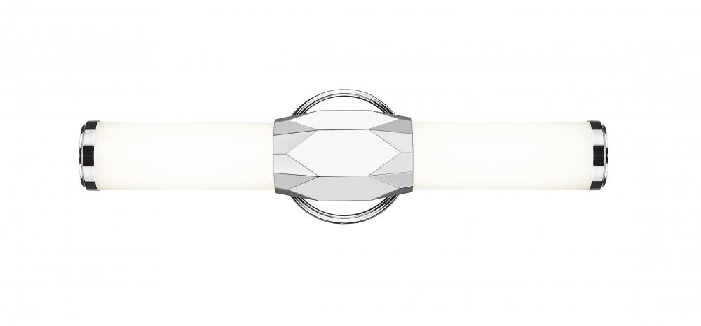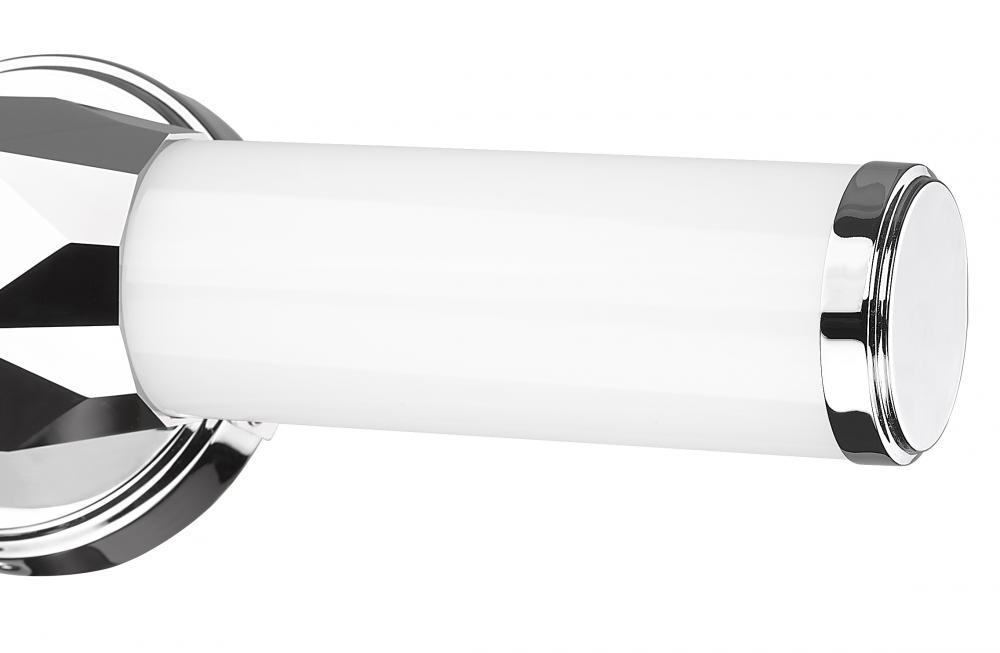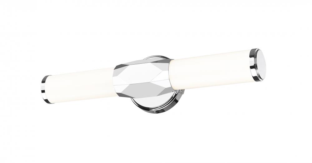 Introduce Art Deco attitude to an elegant one-light vanity light bridging motifs between transitional and modern. Aluminum framing with a brilliant chrome finish includes end caps and a prism-inspired holder, embellishing the rich geometric and complete package of a light fixture with optional color temperature values.
