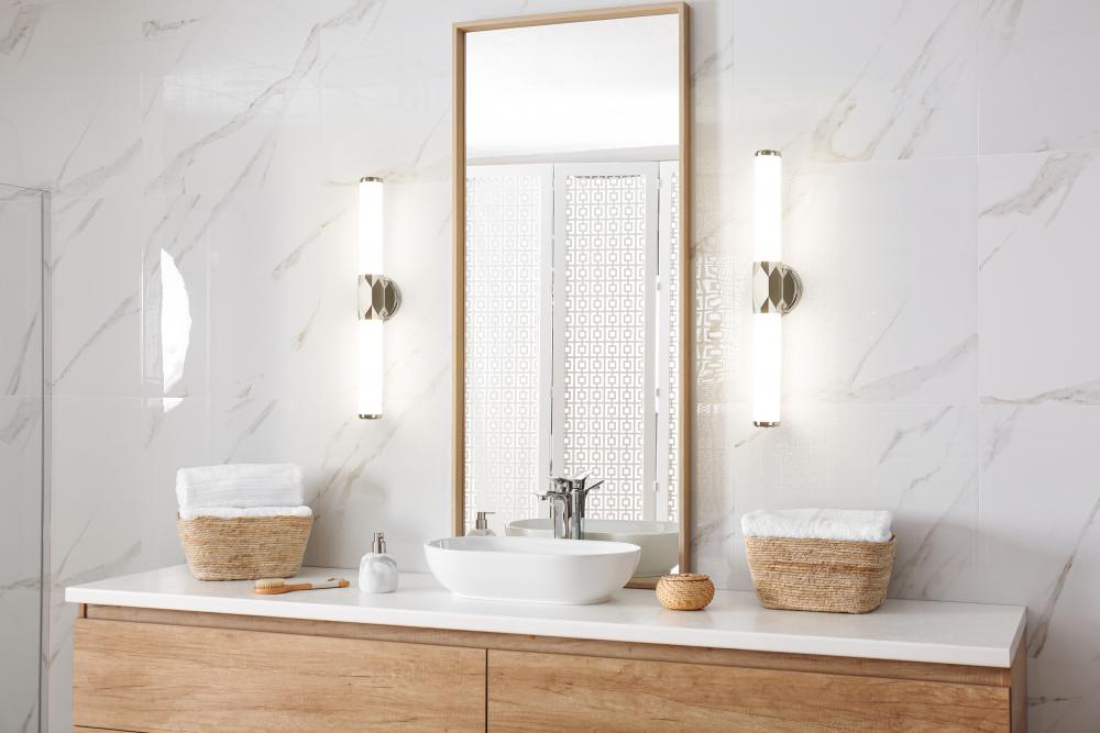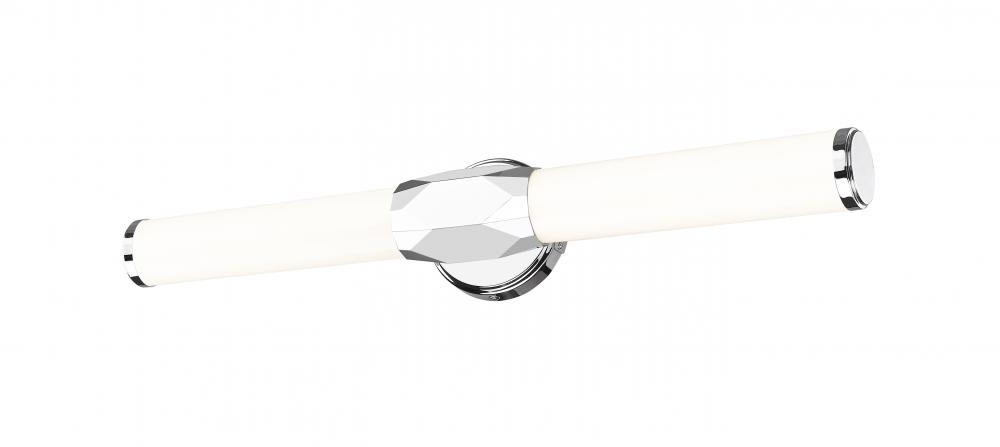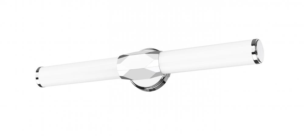 A brilliantly finished frame and stylish accents bring life to a one-light vanity perfect for a host of bath or living spaces. Aluminum framing with a chrome finish includes end caps and a prism-inspired holder, furthering the rich geometric and complete package of a light fixture with optional color temperature values.