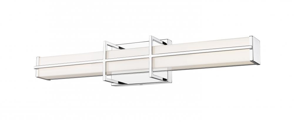 Brighten your modern vanity with the elegant simplicity of a dimmable LED bath light. Energy efficient, its got a selectable color temperature for custom illumination, and delivers a rich, stylish look with a linear bracket design in a gleaming chrome finish that pairs perfectly with a frosted diffuser to create bright, true lighting for all your daily grooming.