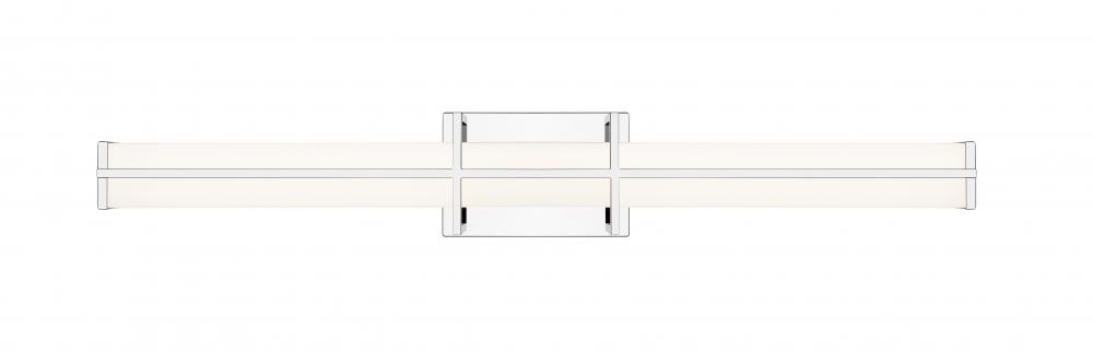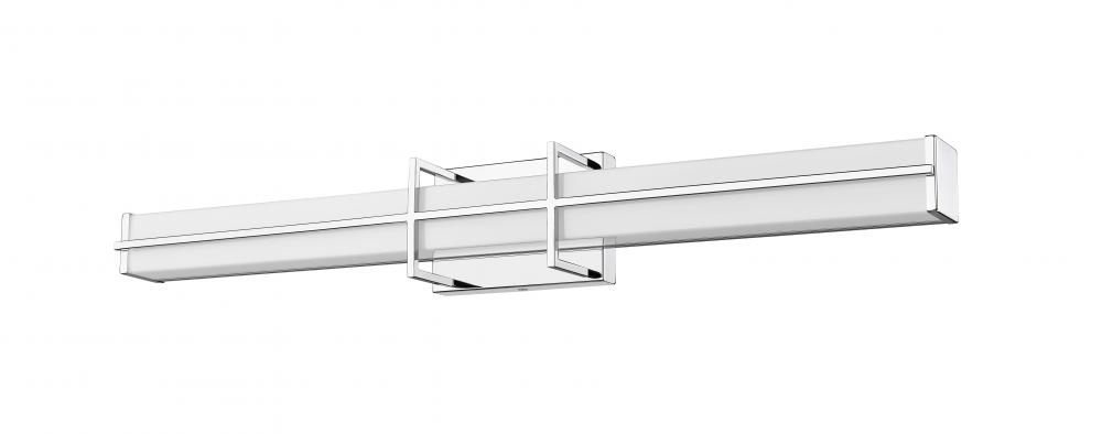 Simplicity sets the tone for the Harrison dimmable LED bath light. Its long, linear profile is perfect over your sink and counter, offering bright, even illumination with selectable color temperature to create the perfect ambiance for you. A rectangular diffuser is frosted for even illumination while a stylish bracket design sports a gleaming chrome finish for a crisp, versatile look in your bathroom.