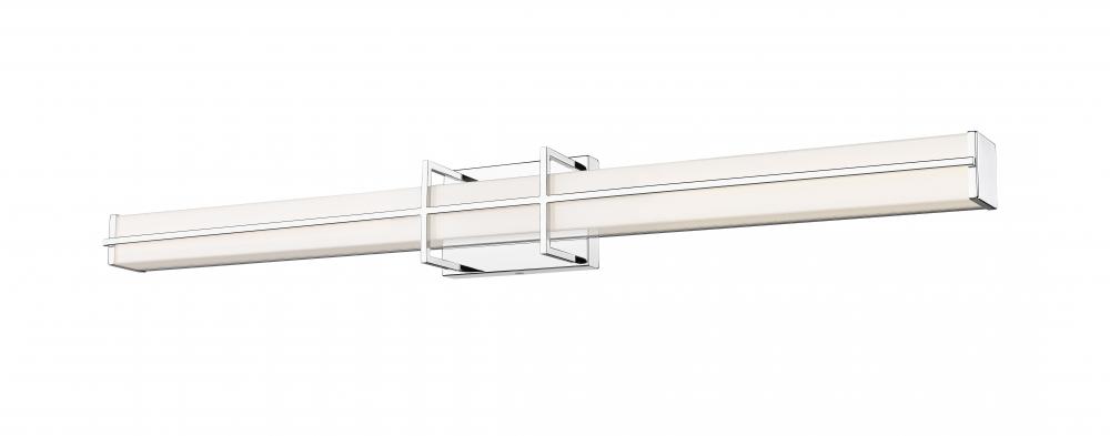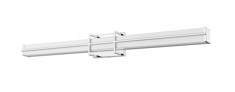A charming bracket pairs vertical and horizontal elements to create a chic presentation for a modern linear vanity light. Its energy efficient LEDs are dimmable, with selectable color temperature for just the right ambiance. A cool chrome finish completes the framework of this fixture, while a frosted diffuser ensures soft, bright ambient illumination thats ideal for daily grooming and beauty tasks.