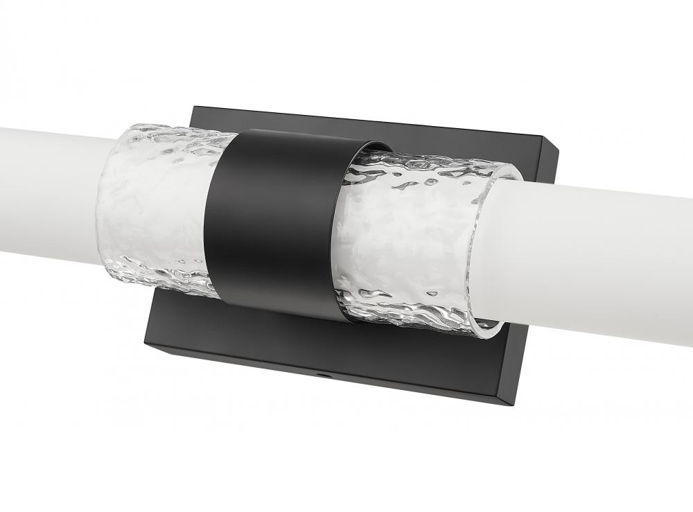 A sleeve of rippling water glass brings feminine flair to the design of the Egon collection. The metal end caps add a finishing touch. Available as a 1-light sconce and 4 different widths to match the size of your vanity. Finished in your choice of Matte