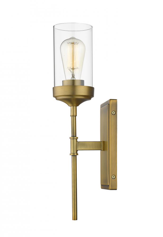 Foundry brass offers a warm, rich finish to this charming steel one-light wall sconce. With a slender build and industrial aesthetic, its frame and mount play host to a delightful clear glass shade that shields a vintage-era bulb.
