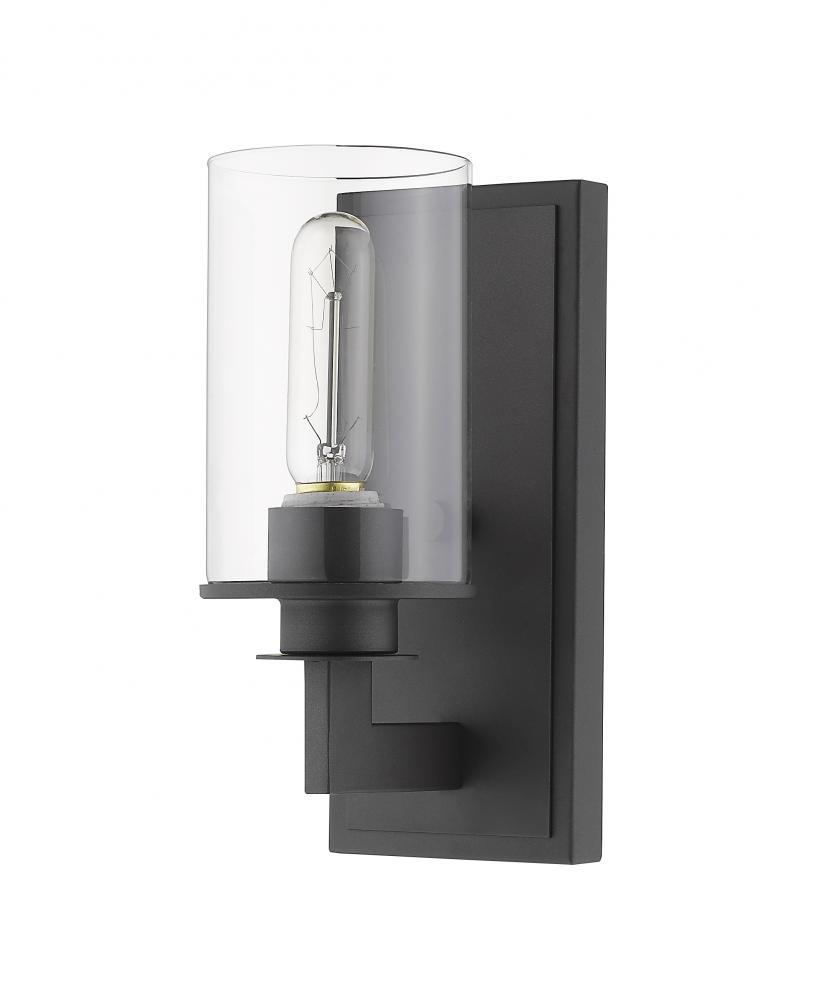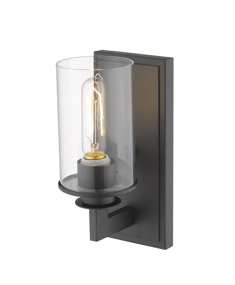 Elegant style abounds in this mid-century modern one-light wall sconce with just a touch of old world appeal. A lovely warm charm is emphasized by the bronze finish and clear glass cylinder-shaped shade.