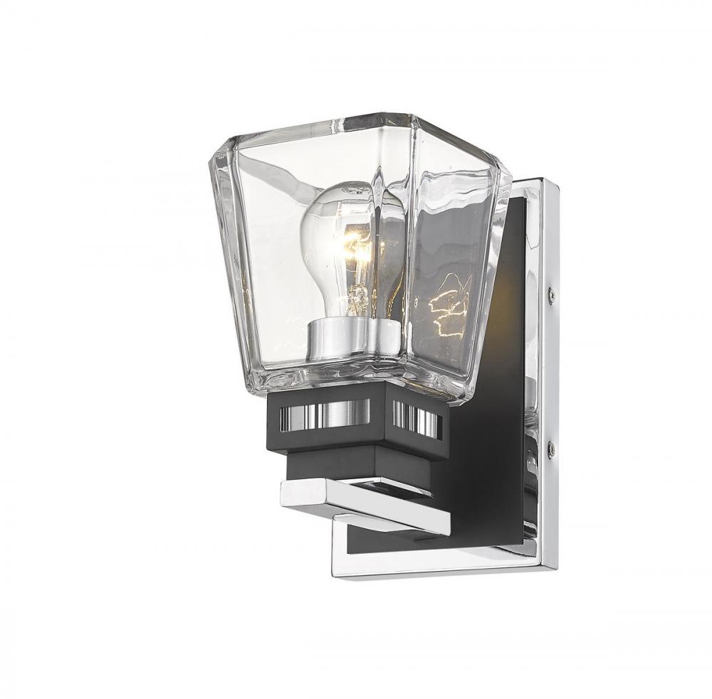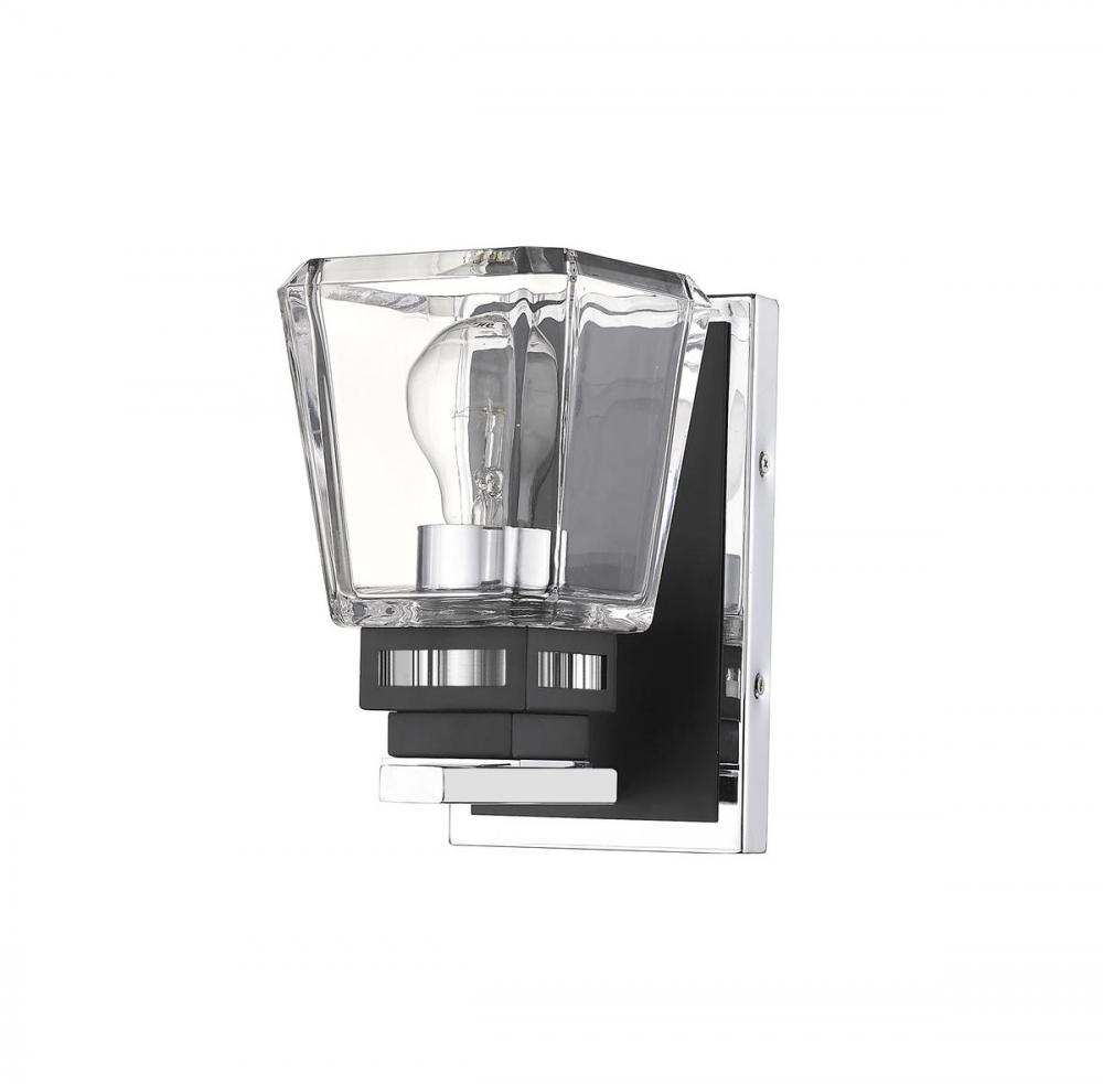Linear design elements with elegant materials deliver a must-have look for a custom bath space. Mid-Century Modern flavor stylizes this one-light wall sconce, showcasing a thick square glass shade mounted to a radiant Chrome finish frame with a Matte Black surface.