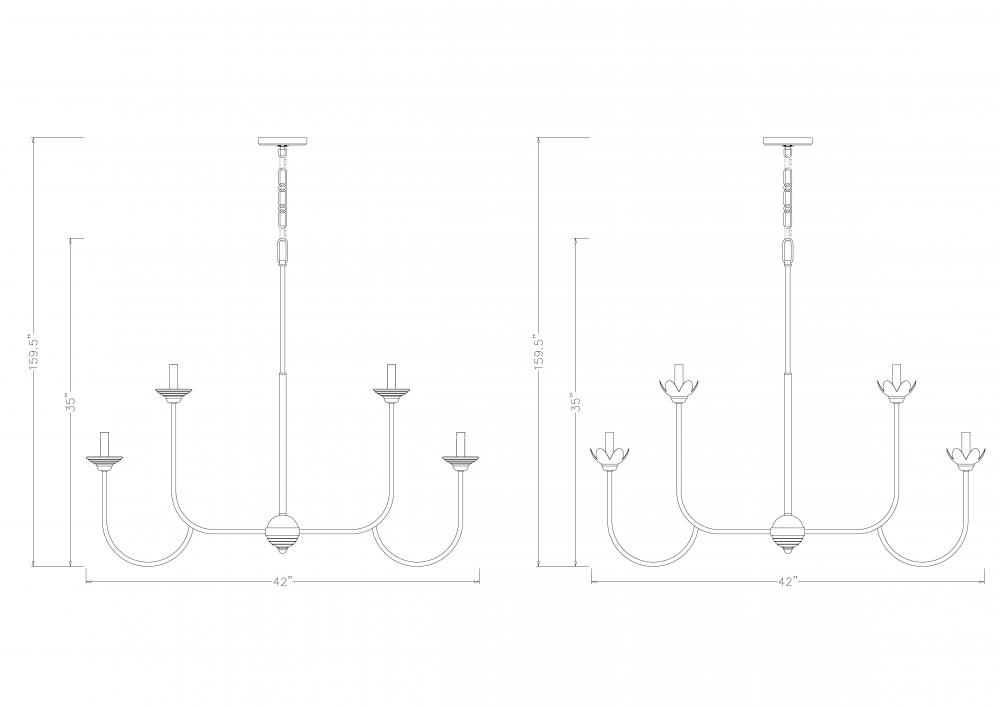 Reminiscent of a field of wildflowers, the graceful arms of the Allistair collection place the bulbs at undulating heights for an unconventionally beautiful aesthetic. The interchangeable bobeches and central glass sphere have a concentric design in white