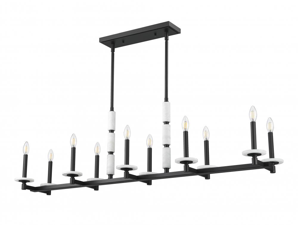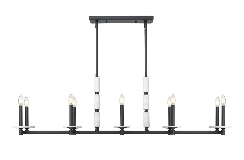 Bold and architectural, this ten-light chandelier in matte black is a dramatic balance of shadow and stone. Solid alabaster spheres float along its dark frame, glowing softly like moonlight against midnight. Designed to anchor a long dining table or kitchen island, this piece redefines elegance with presence.