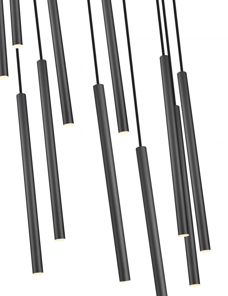 Infused with simplicity and sophistication, this modern 11-light chandelier is a stellar choice over a dining room or foyer. It features a cascading fall of slim lights, each with an integrated LED thats dimmable and energy efficient, and showcases a matte black finish. Its staggered, spiraling design adds a sense of artistry, beautiful over an elegant living space.
