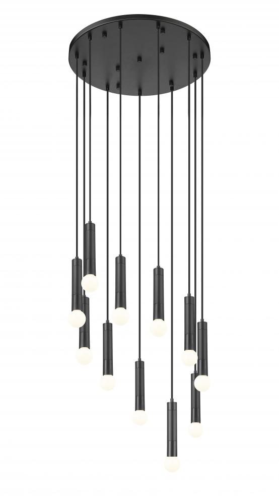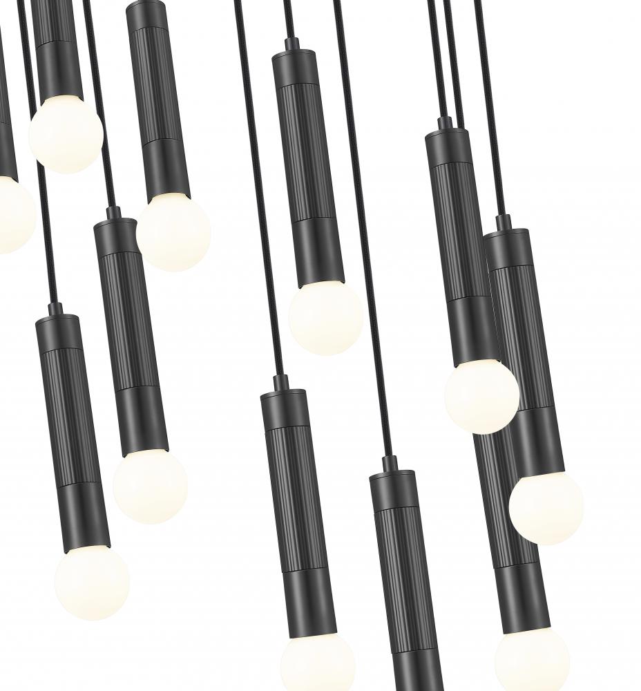 Create bold contrast with the rich, eye-catching matte black finish of this modern 11-light chandelier. It showcases a distinctive round canopy and braided cord, leading to elongated tubes and bright lights that cast inviting illumination. Its a beautiful solution in your entry or dining room.