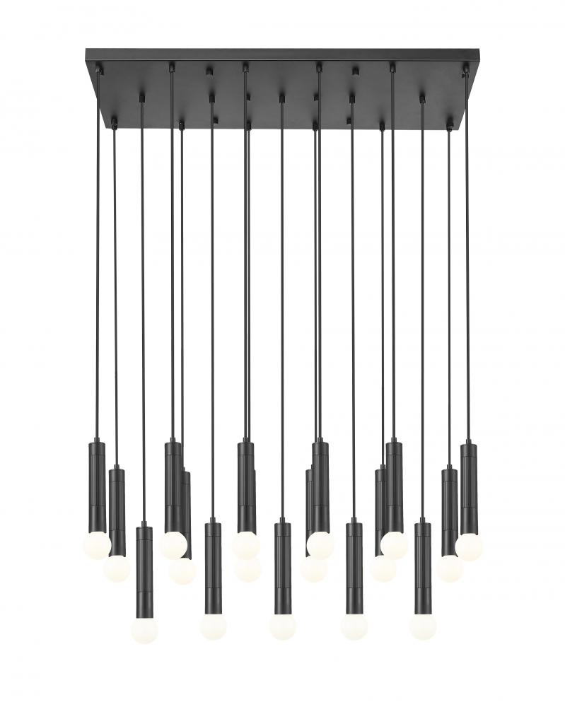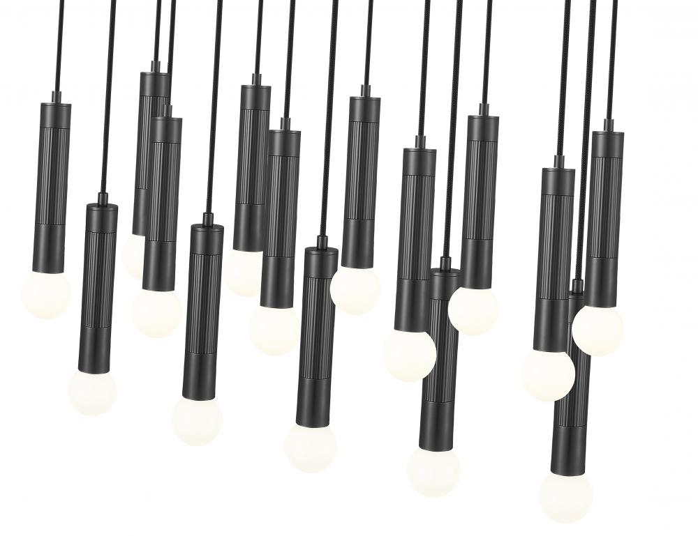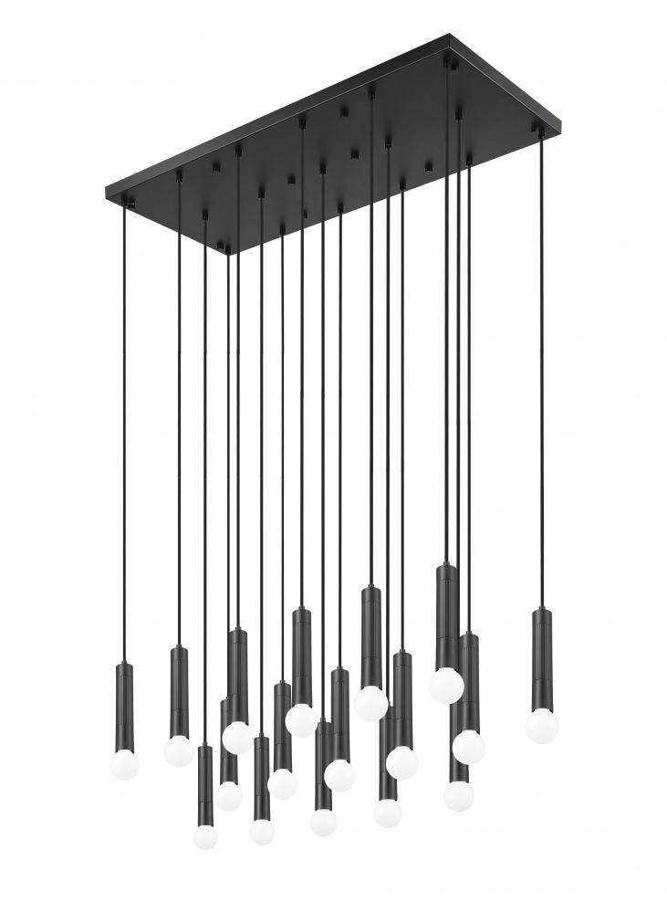 Cool matte black finishing sets the tone for a modern 17-light linear chandelier. At home over an island or dining table, it adds refined simplicity of silhouette and is embellished with braided cords and elongated tubes for excellent illumination.
