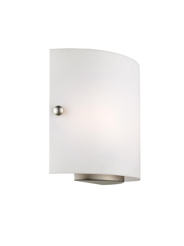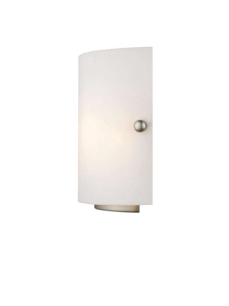 This Exceptionally Well-Proportioned Wall Sconce Is A Subtle Addition To Your Decor. This Design Features Satin White Acrylic With Brushed Nickel Clip Accents.