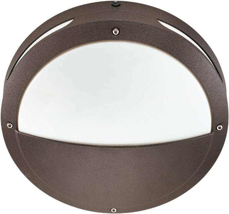 2-Light Round Hooded Wall/Ceiling Light in Architectural Bronze Finish with Photocell and (2) 18W