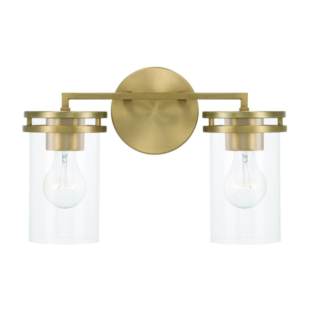 14.25"W x 9.75"H 2-Light Vanity in Aged Brass with Clear Glass