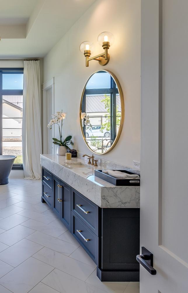 Is there anything more perfect in design than a circle? The Sutton bath series embraces the familiar shape in its backplate and echoed by the open-edge globe shades that can be mounted up or down. Available in 1- to 5-light versions in a choice of Matte Bl