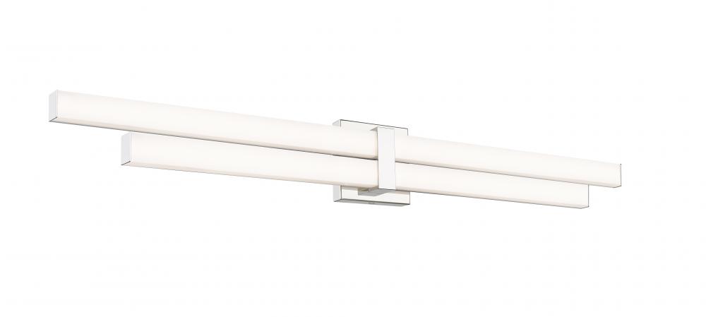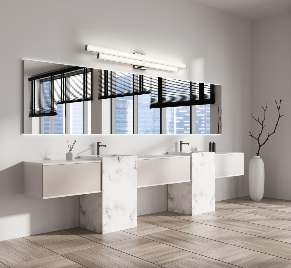 The Zane family of vanity lights is comprised of an asymmetrical stacked design that provides ample light and plenty of style. The choice of 18-, 25-, 32-, and 40-inch widths ensures that Zane will suit the most popular vanity sizes. Lamped with dimmable m