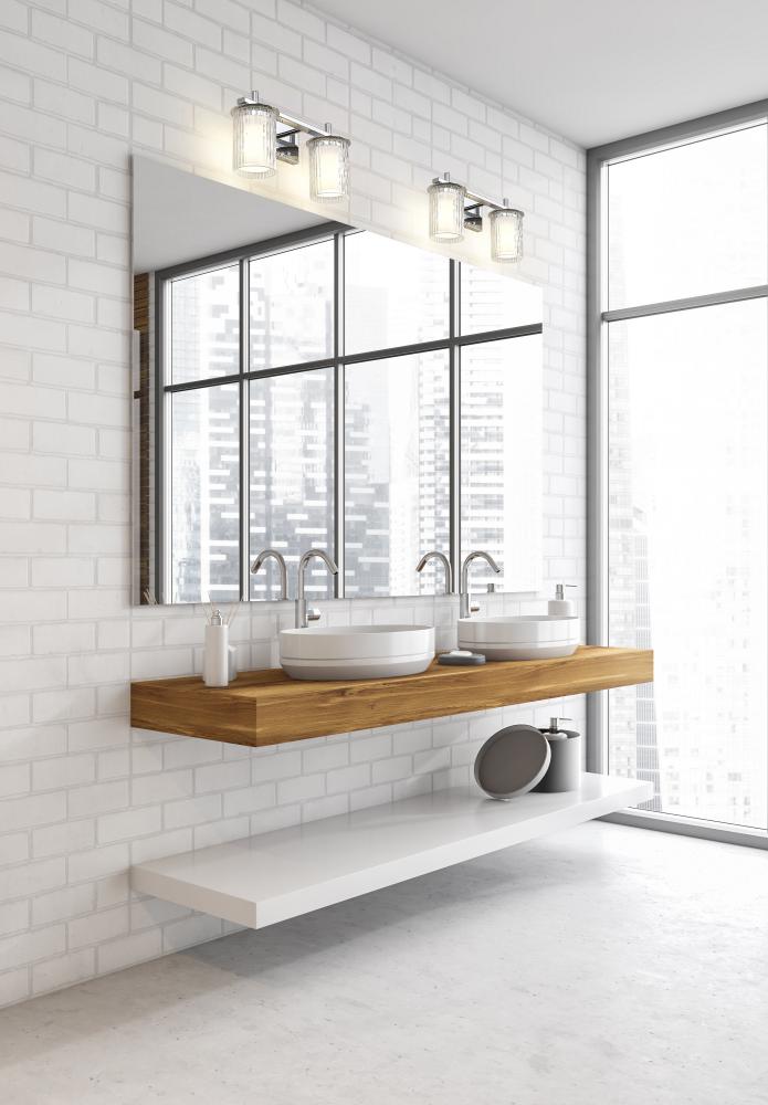 The Grayson vanity light demonstrates attention to detail with its clear wave glasswork with an interior white glass that evokes the serenity of waves. (Pro hint: the vanity can be used without the inner white glass for a completely different look) It is a