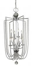 Oversized crystal balls and loops create a striking divergence from the classical styling of the tall candles set upon crystal bobeches. Graceful crystal drapes and gleaming chrome mingle playfully with the oversized elements of these fixtures.