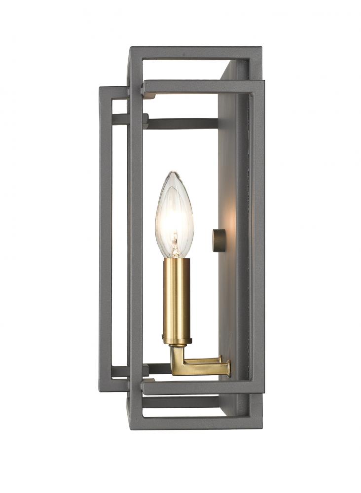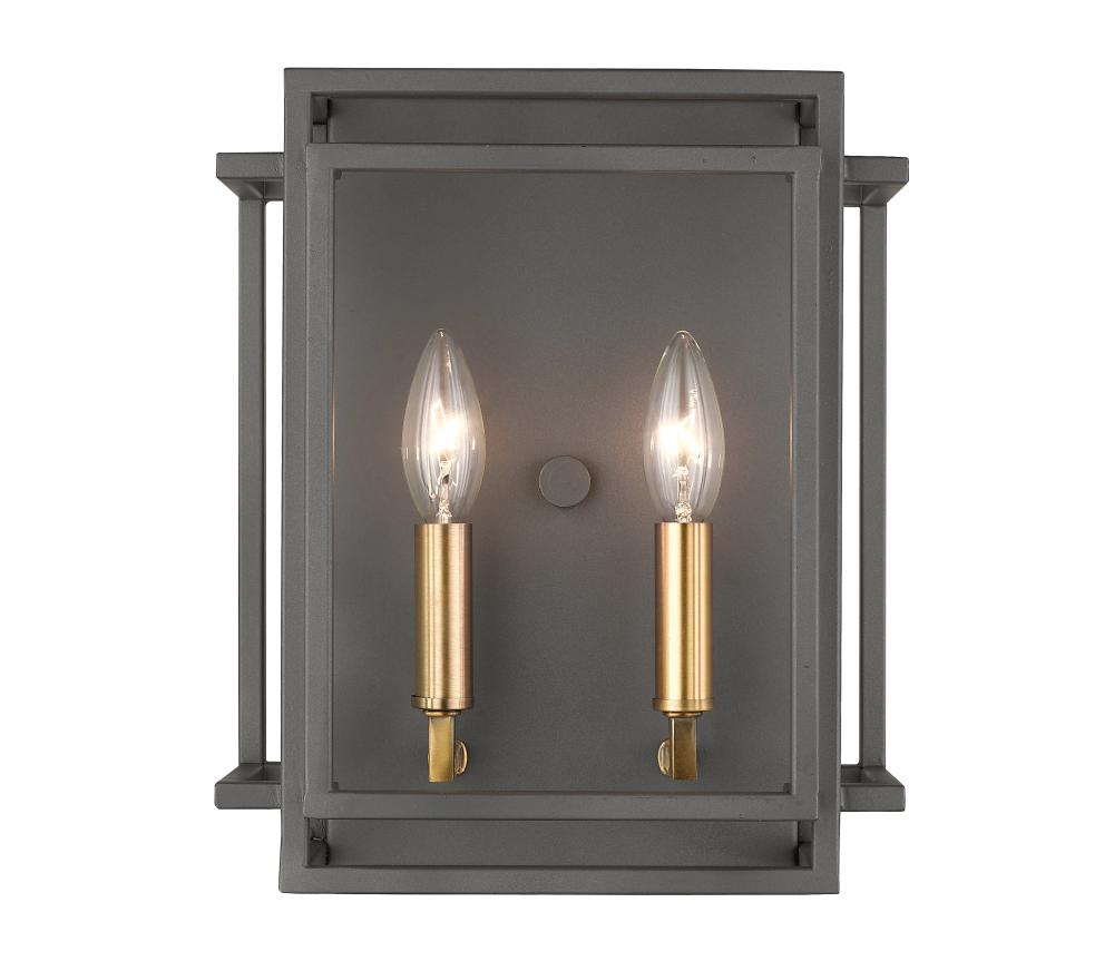 Enjoy an enticing blend of geometric architectural style with a traditional romantic accent that makes this two-light wall sconce a perfect choice. Warm finishes of bronze and olde brass add a richness to a boxy modern silhouette, and enhance the sensual look of candelabra-style bulb bases.