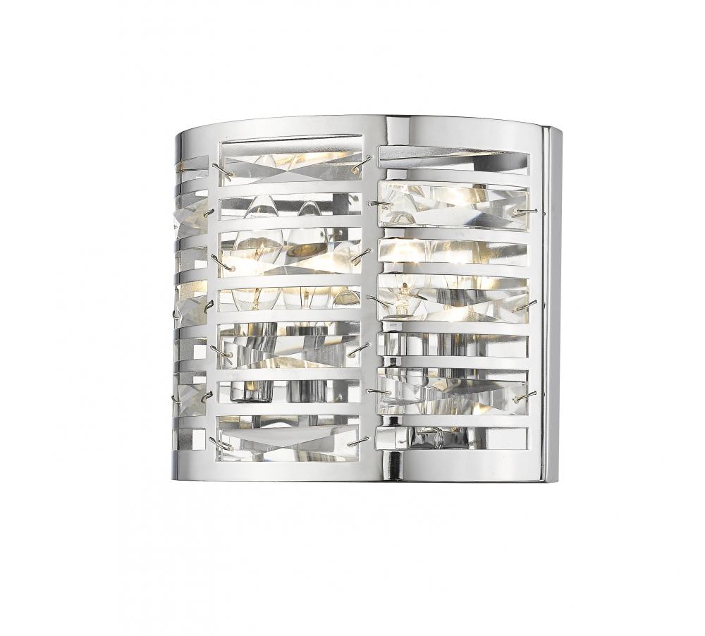 Transform a modern bathroom with the metallic radiance of this two-light wall sconce in chrome. Bright and brilliant, the sleek frame is full of geometric cut outs that elevate any space.