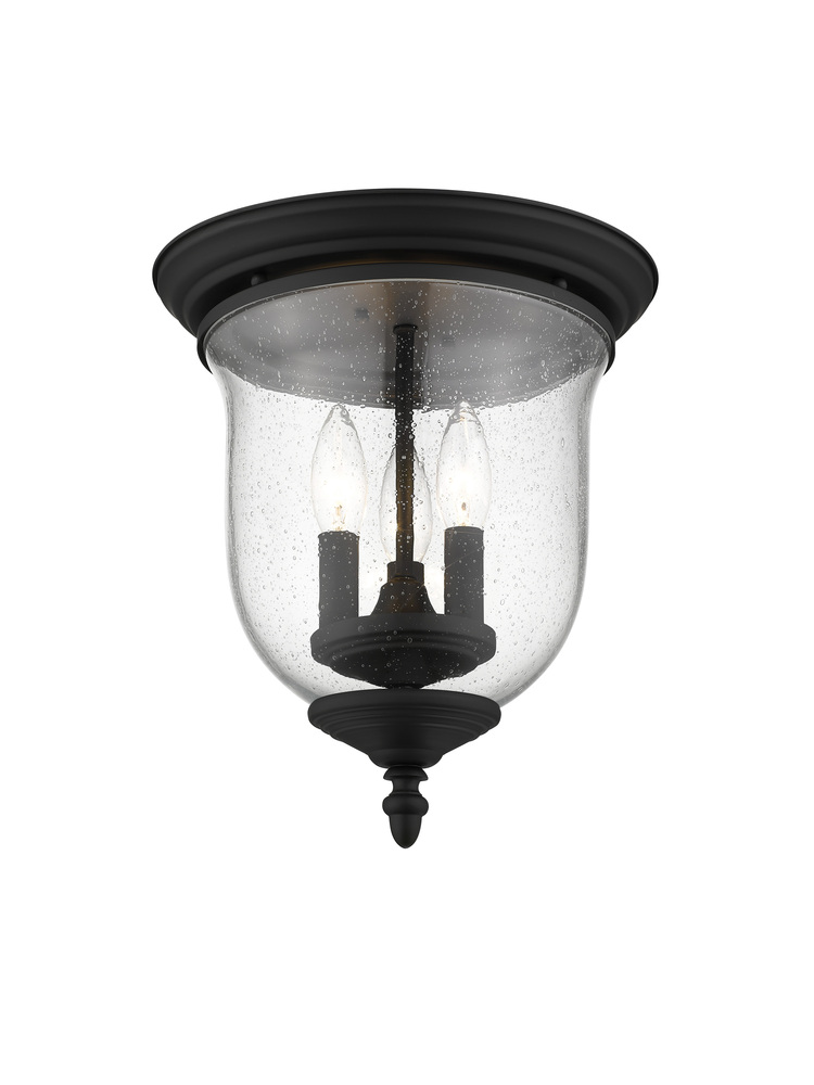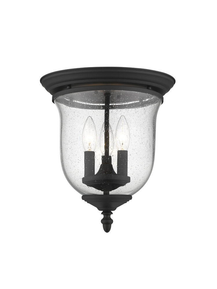 The Legacy Collection Offers A Chic Update To Traditional Style Lighting. This Flushmount Light Design Comes In A Beautiful Black Finish With A Traditional Seeded Glass Bell Jar Adding Style.