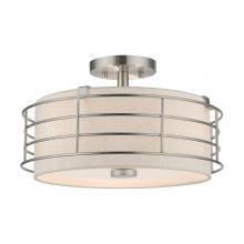 The Blanchard semi-flush mount adds refined style and a hint of mystery to your décor. The english bronze finish and an oatmeal handcrafted hardback shade create warm illumination, while soft light brings to life the intricate fretwork pattern. This medium three-light semi flush mount will add a sophisticated and glamorous look to almost any interior design style. It will work great in the living room, hallway, over the dining or kitchen table and the bedroom.