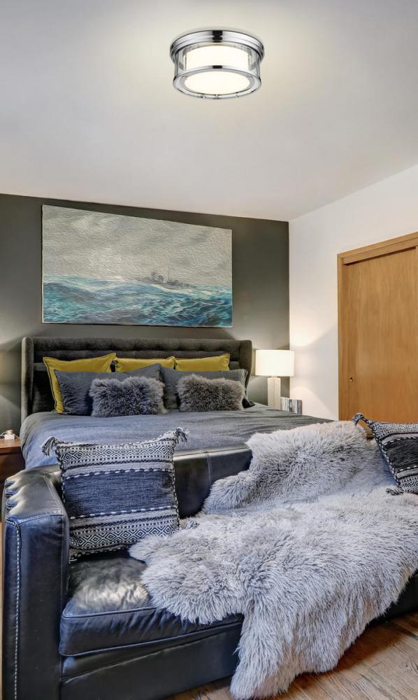 A straightforward design reflects classic beauty and contemporary elegance with a hint of industrial flair, transforming the Willow three-light flushmount ceiling light into a decorative addition to modern spaces. With a radiant chrome finish metal frame, its inner matte opal shade and protective outer clear glass shade team up to create a statement-making way to illuminate a modern kitchen, dining space, or hallway.