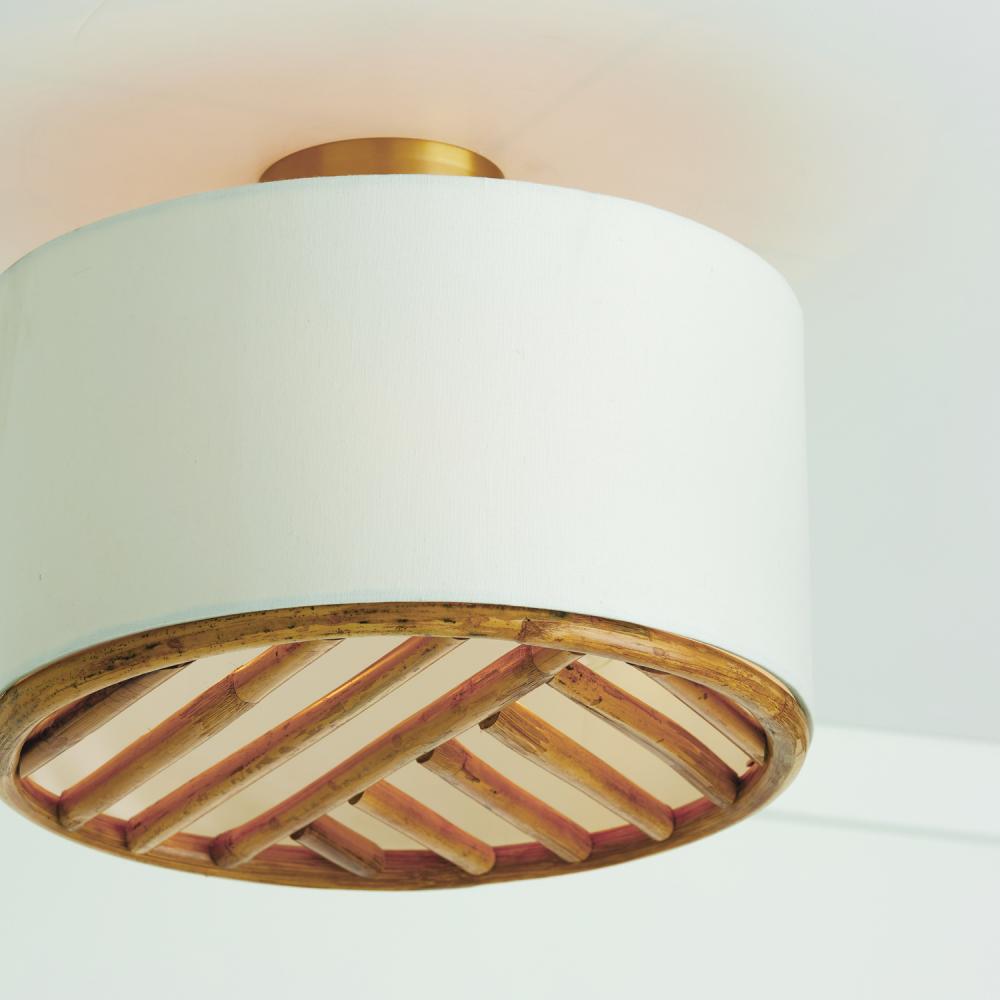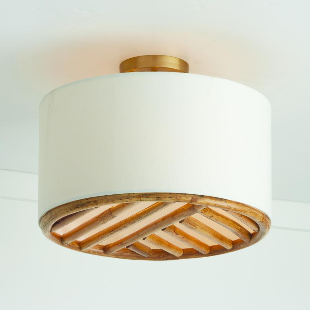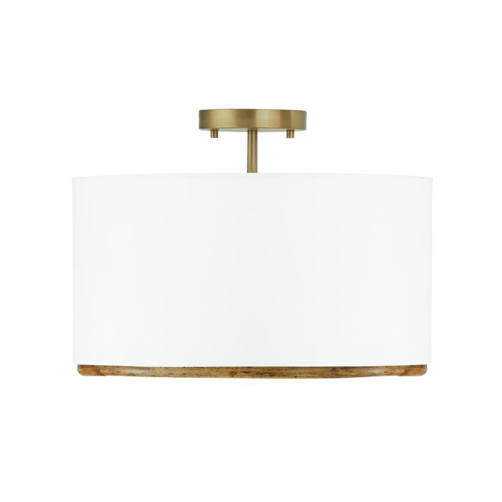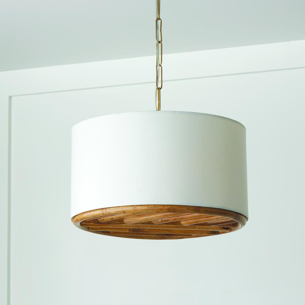 16.75"W x 14"H 3-Light Dual Mount Pendant or Semi-Flush in Matte Brass with White Fabric Shade