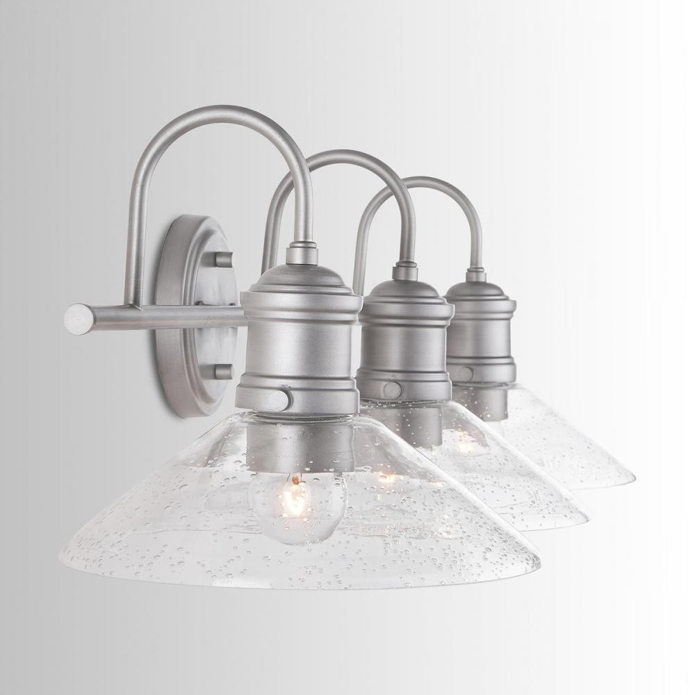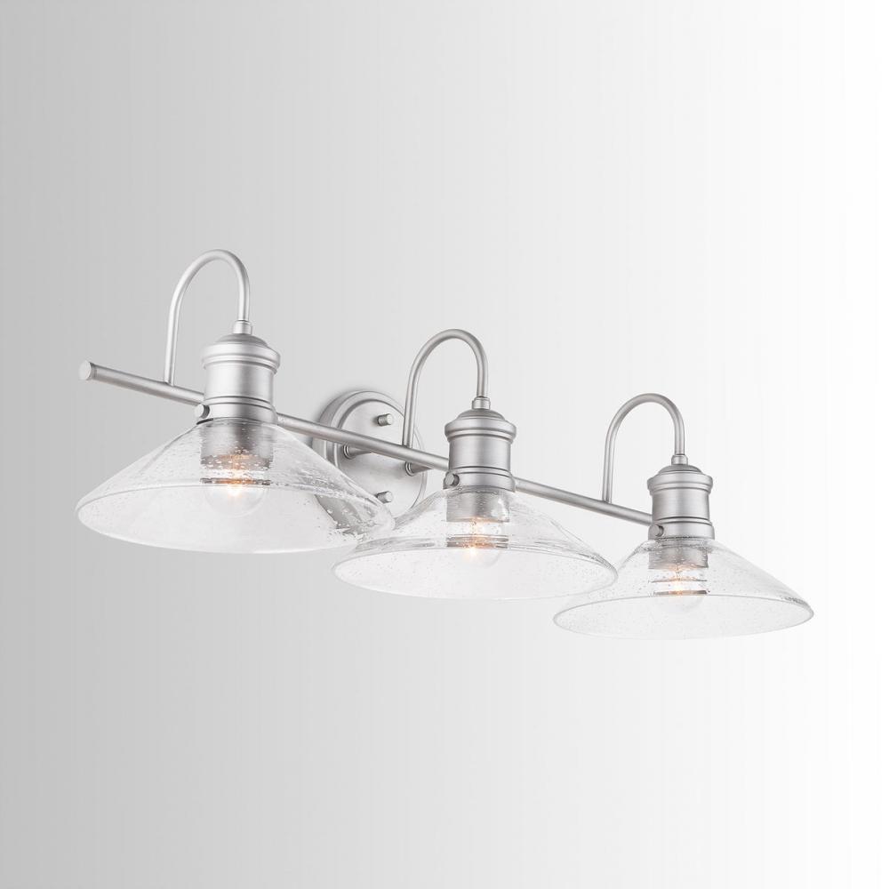 3-Light Vanity in Brushed Nickel Painted with Clear Seeded Glass