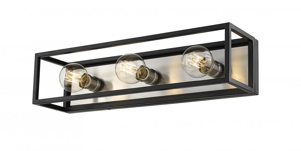 Give your home lighting a bold, edgy upgrade with this two-tone three-light vanity. It features a classic matte black and brushed nickel finish with an austere rectangular design. Youll love how it energizes a bathroom or powder room with its panache and glam.