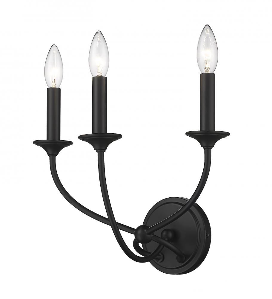 Create a theatre-inspired look in a traditional or transitional space with this captivating three-light wall sconce. Delivering accent lighting in a living room, bedroom, or hallway, this tasteful fixture focuses on symmetry and proportion with a black matte finish steel frame and wall plate, and side-by-side candelabra mounts that soften its bold finish.