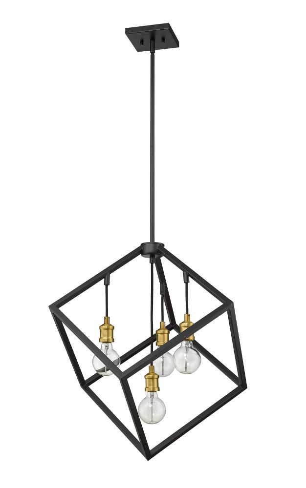 Youll love the clean modern edge that this two-tone four-light pendant adds to your home. It features a bronze and olde brass finish with the lights inside a single cube-shaped shade for a dynamic look and feel. Its a vibrant light designed to transform any dining room, hallway, bedroom, or kitchen.