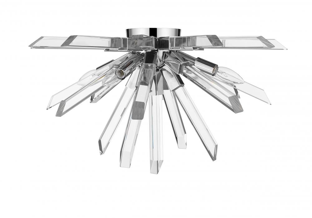 An explosion of beautiful crystal arms extend forth in the Burst collection of crystal fixtures, like stars in the night. The reflective nature of the clear crystal and sleek Chrome finishes make these fixtuers sparkle intensely.