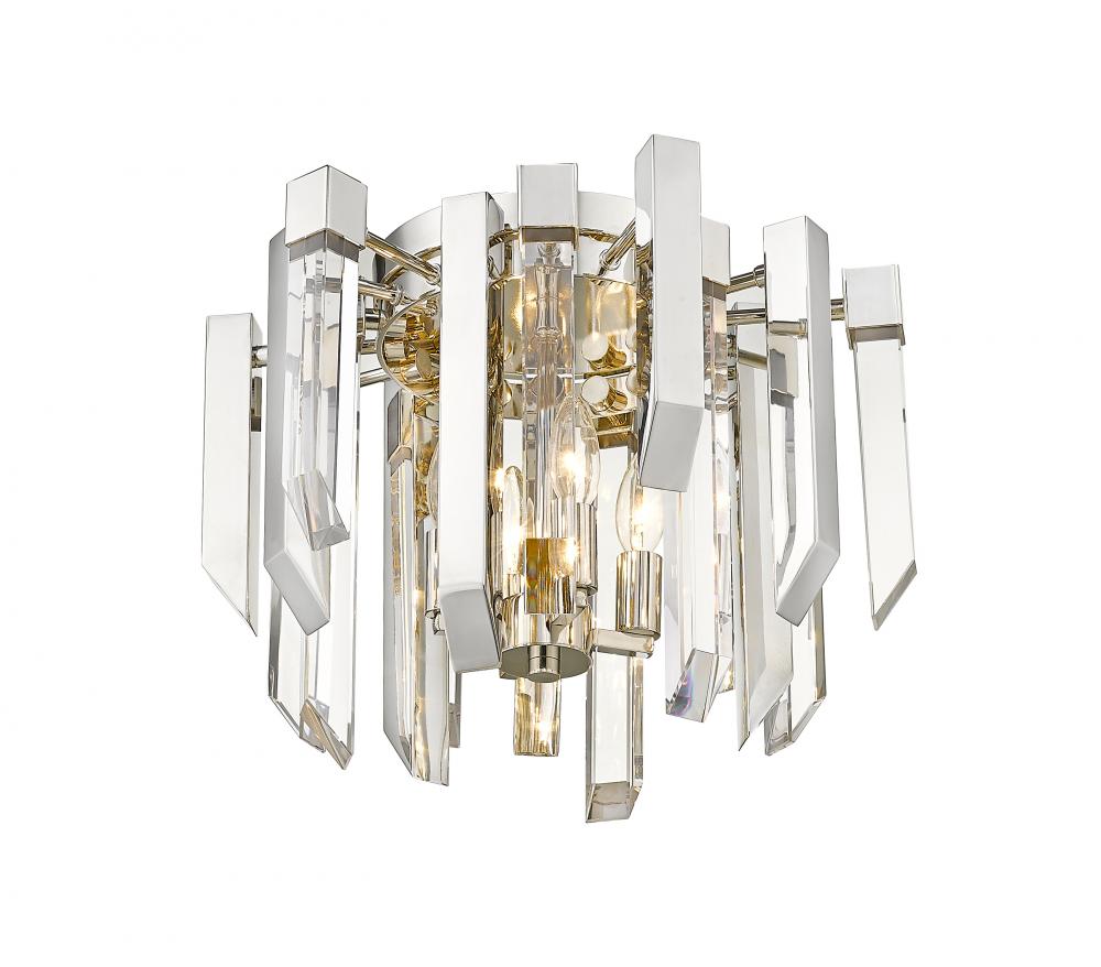 Add some sparkle to a hallway or foyer with this exquisite, clear crystal flush mount ceiling light. This stunning fixture flaunts four glowing lights that glisten and gleam against the dazzling crystal shade and shining polished nickel frame.
