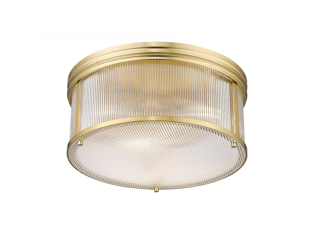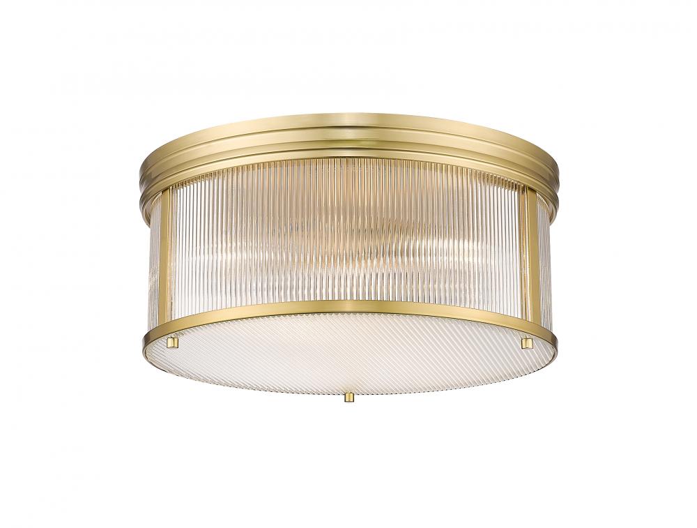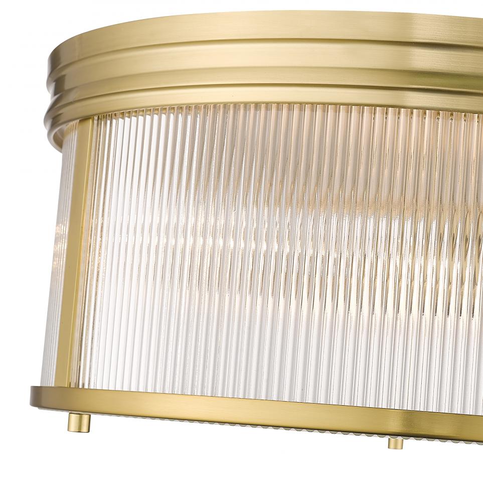 Architectural ribbed glass creates rich texture and depth for a modern four-light flush mount ceiling light thats versatile enough for virtually any room. Its modern gold finish provides striking warmth and glam elegance, perfect for an entryway, living area, or bedroom.