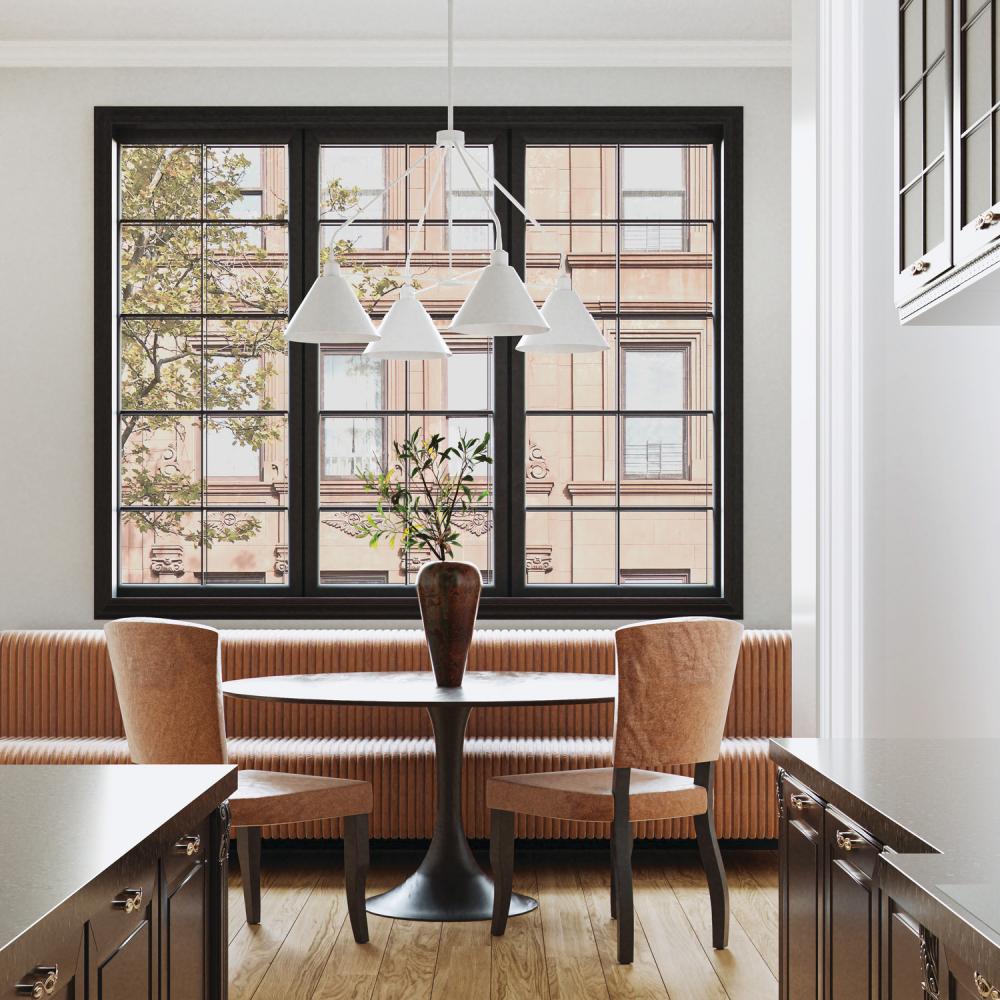 Bring modern style to any space with the Alden Chandelier. The crisp, angled shades and contoured arms create a unique silhouette, while the White finish offers a sleek contrast.