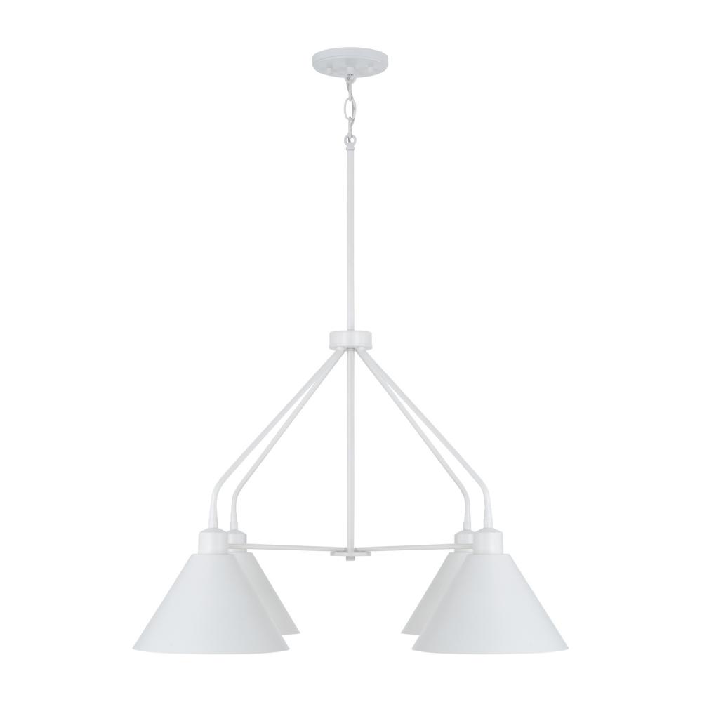 4-Light Modern Metal Chandelier in White