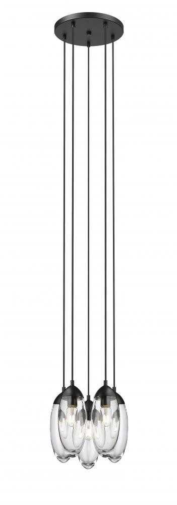 Bring ambient lighting and a glam artistic vibe to a nook or entryway with a fixture created to impress. This five-light chandelier delivers organic sensibility with a gallery influence, dangling delicate oval glass shades from a round metal canopy with a bold matte black finish. Transform a compact setting into a display venue for elegance in lighting and design.