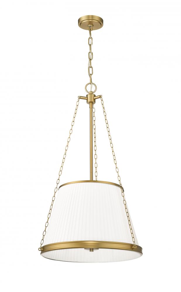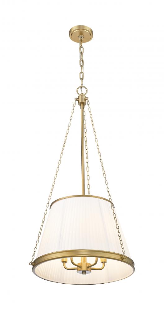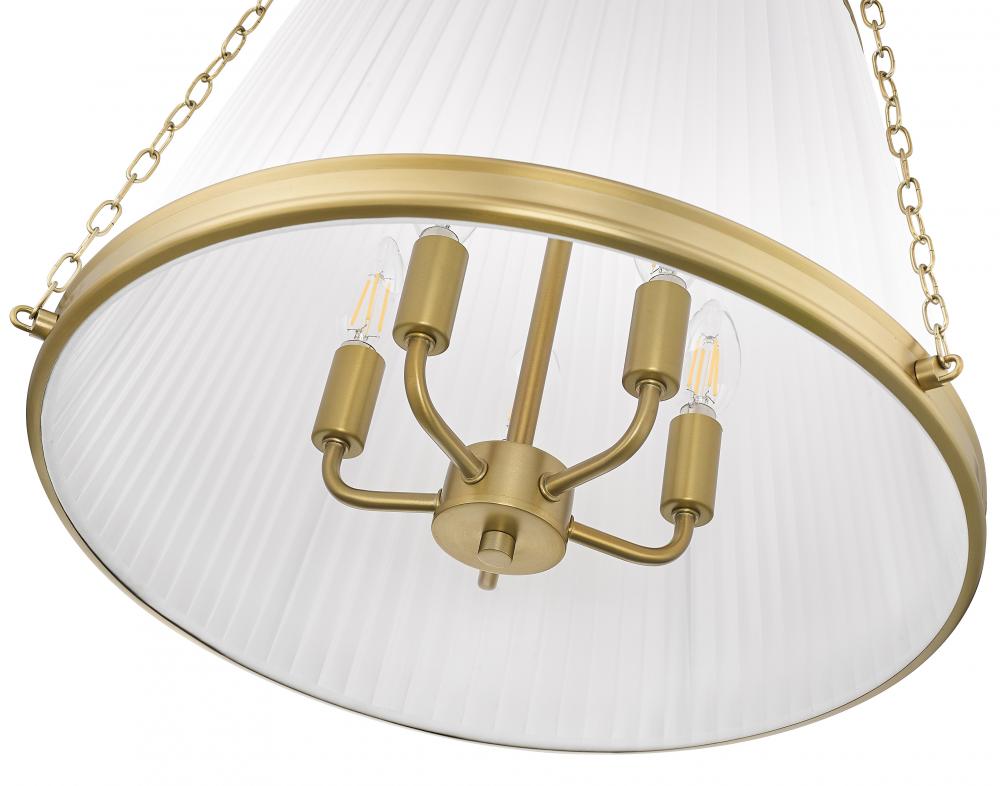 Pleated linen and delicate chains create classical elegance for this modern five-light pendant. It features a familiar empire silhouette while offering beautiful, diffused illumination over your living or dining spaces. A modern gold finish is rich and warm, delivering fresh sophistication and inviting flair.