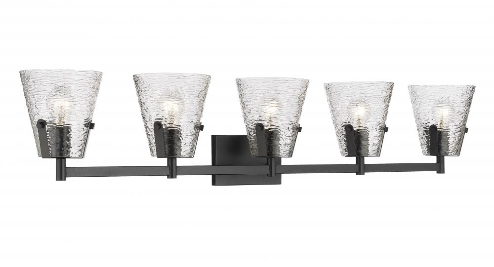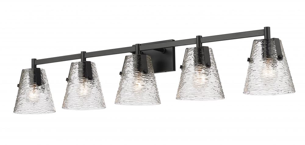 Evoking the look of sunlight dancing on waves, the textured surface on the Analia vanity series handblown glass shades underscores the spa-like feeling. Available in 1- to 5-light versions and a choice of Brushed Nickel, Chrome, Matte Black, or Modern Gold